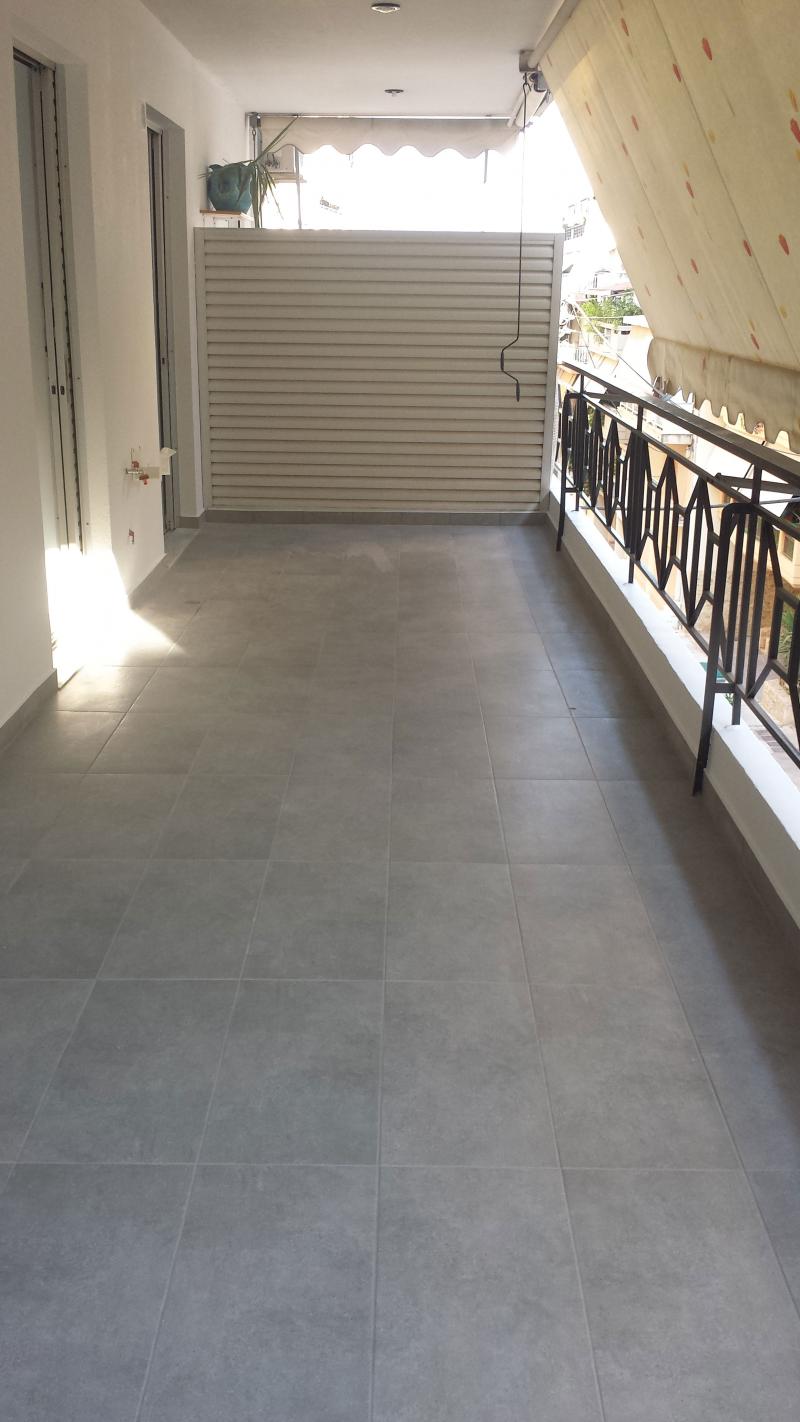Αντικείμενο του έργου ήταν ο επανασχεδιασμός και η ανακαίνιση σπιτιού 66τμ 2ου ορόφου σε πολυκατοικία κατασκευής του 1990 στο Γαλάτσι. Στόχος της εταιρίας μας ήταν ο επανασχεδιασμός και η ολική ανακαίνιση μπάνιου και της κουζίνας με σκοπό την αξιοποίηση με τον καλύτερο δυνατό τρόπο των χώρων του διαμερίσματος. Στα πλαίσια του στόχου αυτού το μπάνιο απέκτησε σύγχρονα και λειτουργικά στοιχεία με τα είδη υγιεινής και τα γκρί πλακίδια να δημιουργούν minimal αισθητική στο χώρο. Στην ίδια λογική κατασκευάστηκαν και τα ερμάρια της κουζίνας σε λευκή και μάυρη απόχρωση. Στον εξώστη το μωσαϊκό δάπεδο επενδύθηκε με πλακάκια γρανίτη σε γκρί απόχρωση. Στην κεντρική είσοδο του διαμερίσματος τοποθετήθηκε πόρτα ασφαλείας με κλειδαριά μη αντιγραφόμενη της CISA. Στο τελικό στάδιο έγιναν εργασίες χρωματισμού.